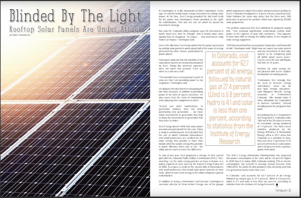 RJ Harrington Jr. is like thousands of other Coloradans. Years ago, he and his family made a large investment in rooftop solar power. At the time, Xcel Energy provided the full retail credit for the power that Harrington’s home provided to the “grid” for redistribution. This was the rate on which he based his investment strategy.