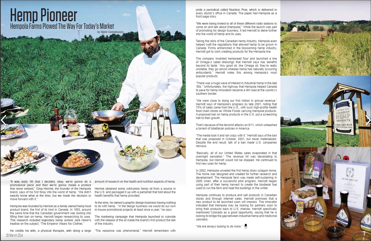 “The response was phenomenal.” Herriott remembers with pride a periodical called Nutrition Post, which is delivered to every doctor’s office in Canada. The paper had Hempola as a front page story.