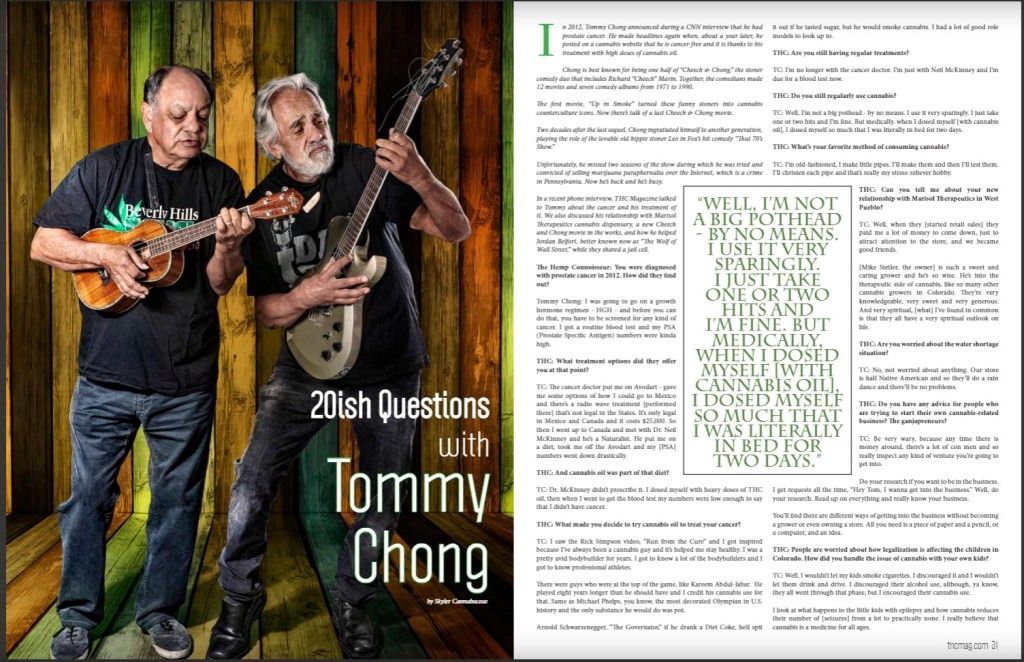 In a recent phone interview, THC Magazine talked to Tommy about the cancer and his treatment of it. We also discussed his relationship with Marisol Therapeutics cannabis dispensary, a new Cheech and Chong movie in the works, and how he helped Jordan Belfort, better known now as “The Wolf of Wall Street,” while they shared a jail cell.